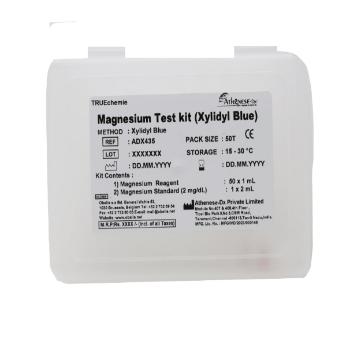 The TRUEchemie Magnesium Test Kit (Xylidyl Blue) is used for the quantitative determination of Magnesium in serum or plasma.