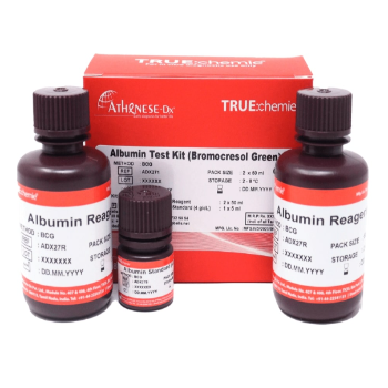 The TRUEChemie Albumin Test Kit (Bromocresol Green) is used for the quantitative determination of Albumin concentration in human serum or plasma.