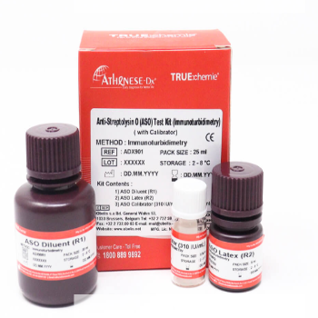 The TRUEchemie ASO Test Kit with Calibrator is a quantitative turbidimetric test for the measurement of ASO in human serum or plasma.
