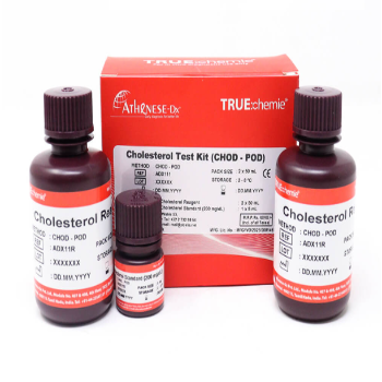 The TRUEchemie Cholesterol Test Kit (CHOD-POD) is used for the quantitative determination of total cholesterol in human serum or plasma.