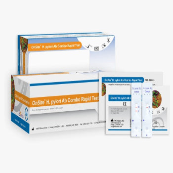 The OnSite H. pylori Ab Combo Rapid Test is a sandwich lateral flow chromatographic immunoassay for the qualitative detection of antibodies (IgG, IgM and IgA) against Helicobacter...